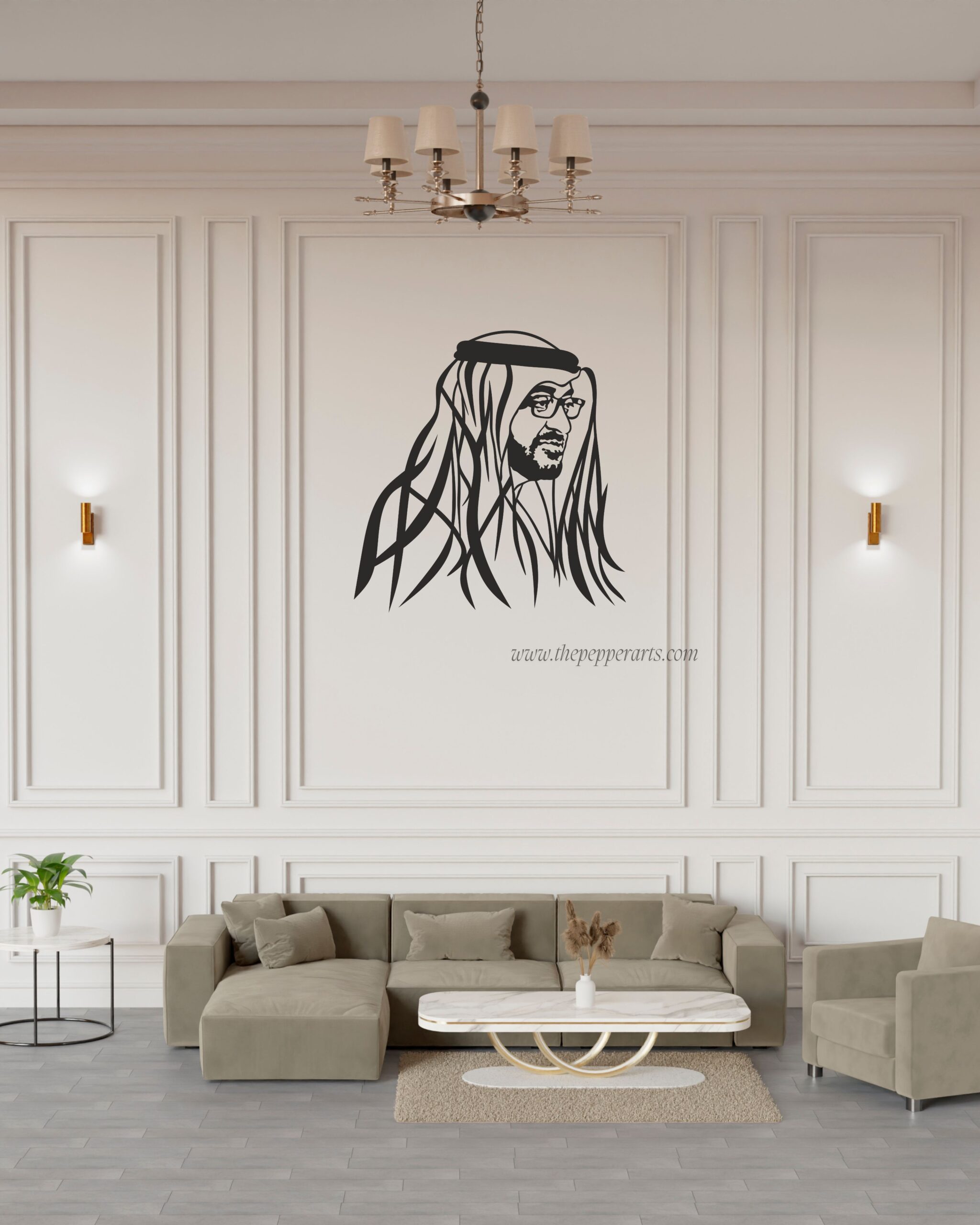 Honor the strength, wisdom, and leadership of His Highness Sheikh Mohammed bin Zayed Al Nahyan, the President of the United Arab Emirates, with this beautifully crafted metal wall art piece. Designed with precision and made from high-quality metal, this artwork adds a touch of elegance and patriotism to any living room, office, or majlis.