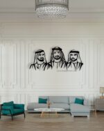 “The United Arab Emirates has been shaped by the vision and leadership of Sheikh Mohammed Bin Zayed, Sheikh Mohammed Bin Rashid, and Sheikh Hamdan. These iconic figures have played a pivotal role in transforming the country into a modern, prosperous, and culturally rich nation. This metal wall art is a testament to their enduring legacy and a beautiful way to celebrate the UAE’s progress and achievements.”