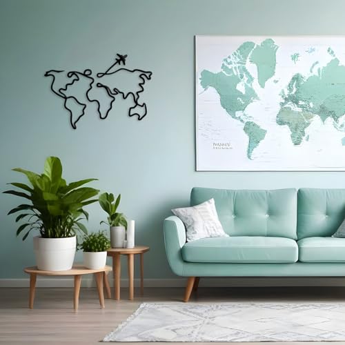 Xedatric World Map Wall Decor – Minimalist Metal Art for Travel Lovers – Perfect Travel Wall Art and Home Décor Accent